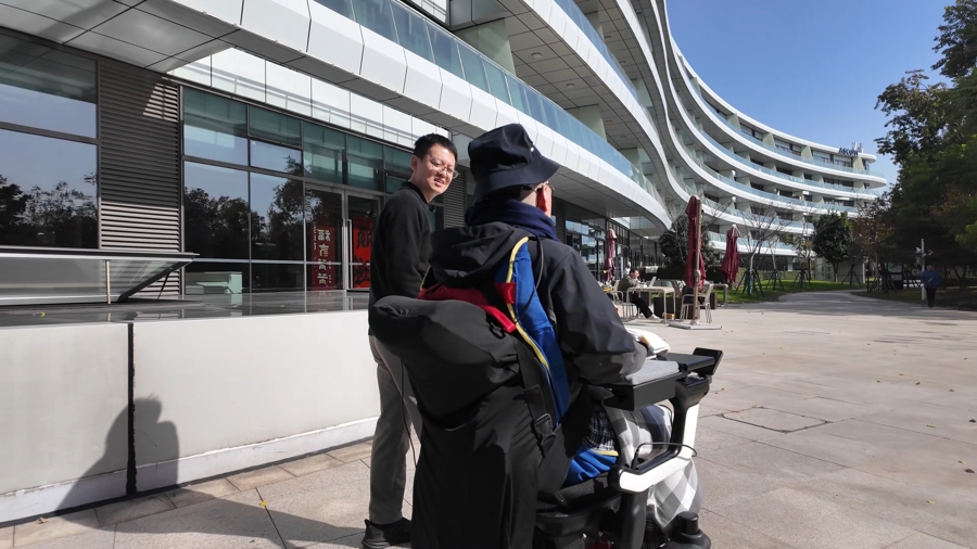 因颈髓损伤而高位截瘫的中年人,仅凭意念,即可自如地操控智能轮椅在小区遛弯,指挥机器狗作为“身体延伸”取回外卖……
