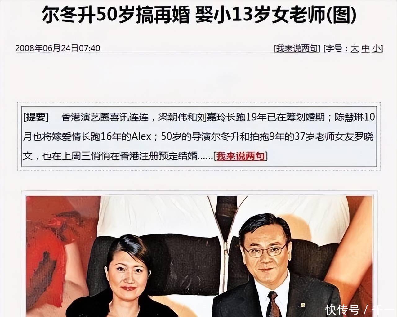 八十年代末,尔冬升短暂结过一次婚,妻子是圈外人,婚姻持续了不到半年,因性格不合而协议离婚。进入九十年代,尔冬升的感情生活低调了许多,直到1999年,他遇到了比自己小十三岁的罗晓文,两人因慈善活动而认识,经过九年的相处后,于2008年结婚。虽然婚姻稳定,但他们始终没有孩子,选择了丁克生活。婚后九年,尔冬升在事业上愈加忙碌,直到2015年,他与一位年轻助理的关系变得越来越亲密。这位助理不仅负责他的工作行程,两人从工作接触到私下发展关系,甚至在2016年迎来了他们的女儿Teresa。